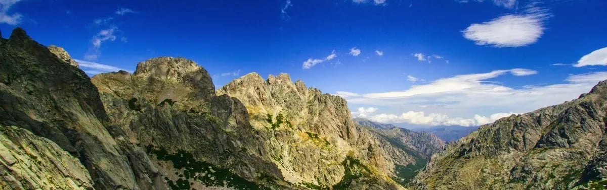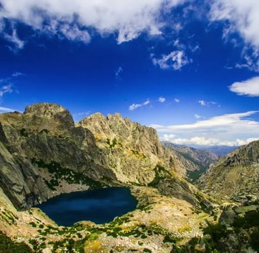 La montagne corse: La Corse est une île montagneuse, où les paysages de pics, d'aiguilles et de lacs alternent avec de vastes plateaux[1]. La montagne est le cœur de l'île, gardienne des traditions et de l'identité corse, avec des villages aux maisons de pierre[1]. Des sentiers de randonnée, comme le GR 20, permettent de découvrir une Corse authentique[1][4]. Les gorges de la Restonica, le Monte Stello et les falaises de Bonifacio sont également des sites naturels à ne pas manquer[1].